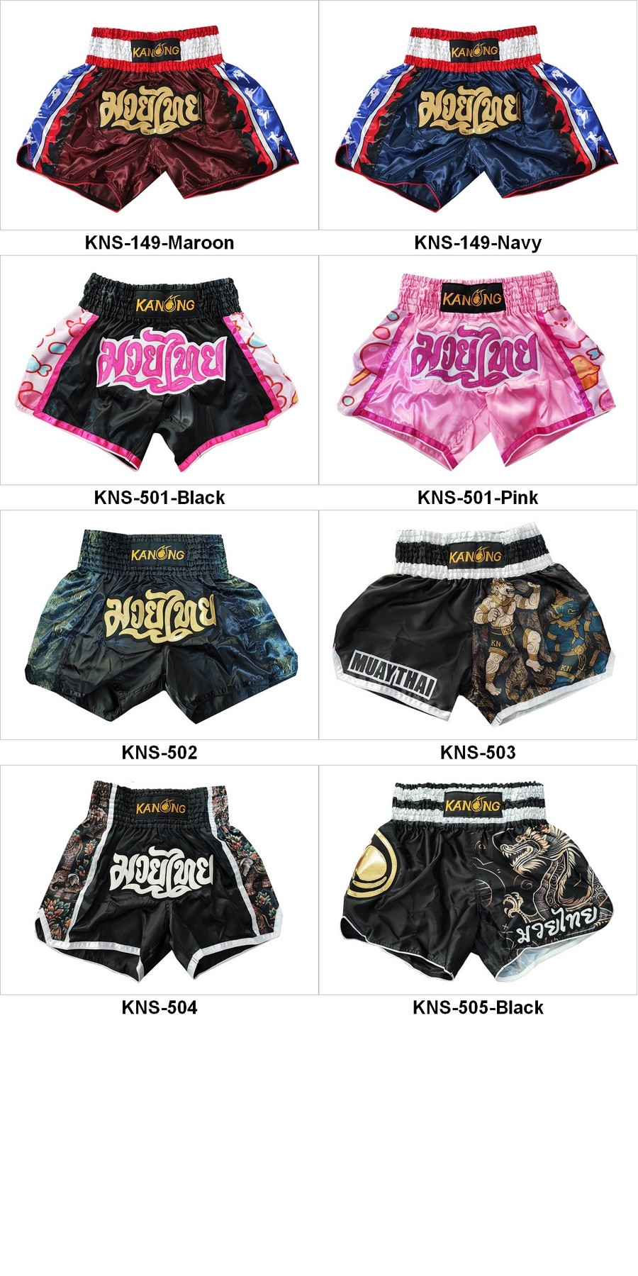 กางเกงมวยไทย by Kanong ทำจากผ้าซาตินเกรดสูงเป็นพิเศษ ที่นิยมใช้สำหรับทำกางเกงมวยไทยคุณภาพให้กับนักชกไทยและต่างประเทศ คงลวดลายเป็นเอกลักษณ์ ให้อารมณ์ความเป็นมวยไทยมากขึ้น